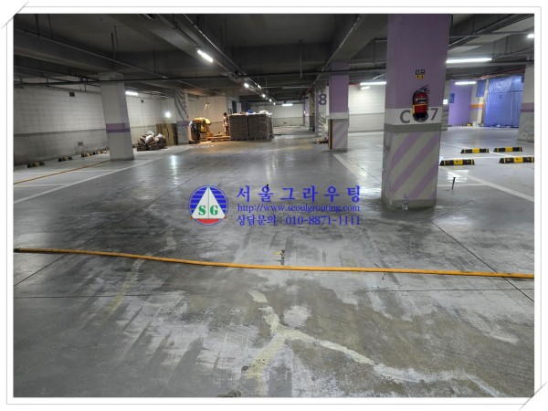 지하주차장 연약지반에 대한 바닥 전체적인 시멘트그라우팅 보강작업